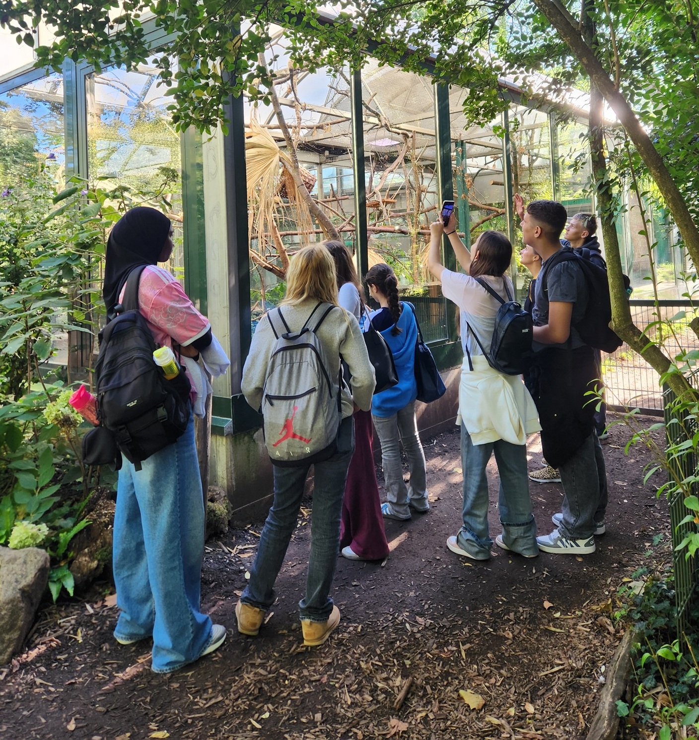 Wir, die Schülerinnen und Schüler der Sprachförderklasse, sind letzte Woche Freitag mit unseren Lehrerinnen, Frau Weidner und Frau Hofmann, nach Köln gefahren. Wir haben uns am Bahnhof getroffen und sind mit dem Zug zum Kölner Zoo gefahren. Dort haben wir viele Tiere gesehen, zum Beispiel Elefanten, Affen , Bären… Auch Dinosaurier, weil er zur Zeit eine Ausstellung über sie gibt. Wir haben 2 mal Pause gemacht. In der ersten Pause waren wir vor den Elefanten und haben auf einer Bank gesessen und ,,UNO‘‘ gespielt. Danach sind wir weiter bis zum Aquarium gegangen. Dort haben wir wieder eine Pause gemacht. In der Pause haben fünf oder sechs Leute ein Eis am kleinen Kiosk vor dem Zooeingang gekauft. Dann sind wir um halb vier nach Gummersbach zurückgefahren. Wir waren so müde und unser Zug hatte Verspätung, deshalb haben wir eine Stunde im Kölner Bahnhof gewartet. Der Ausflug war toll!