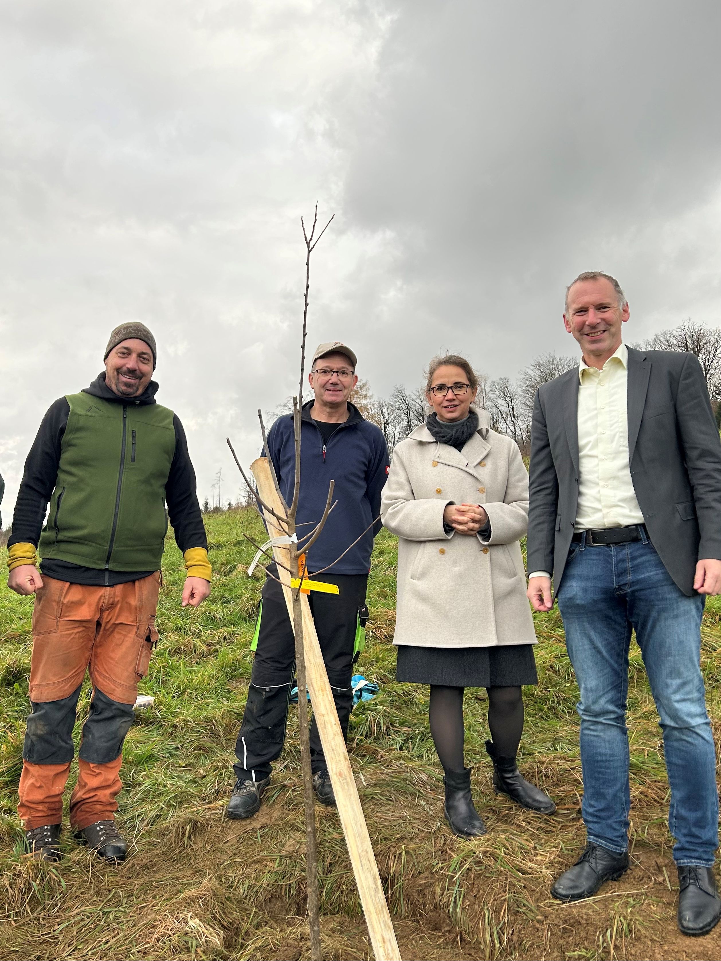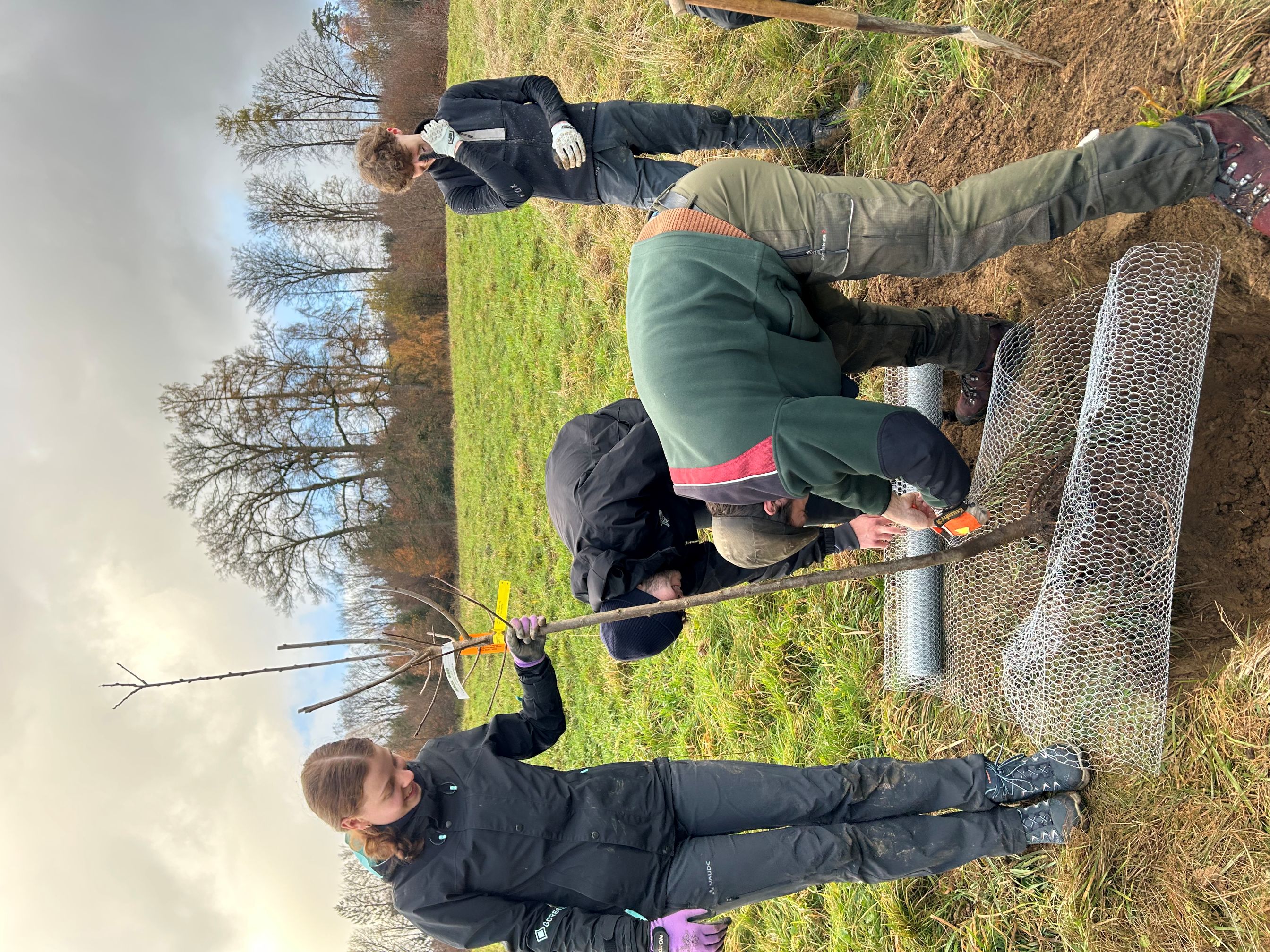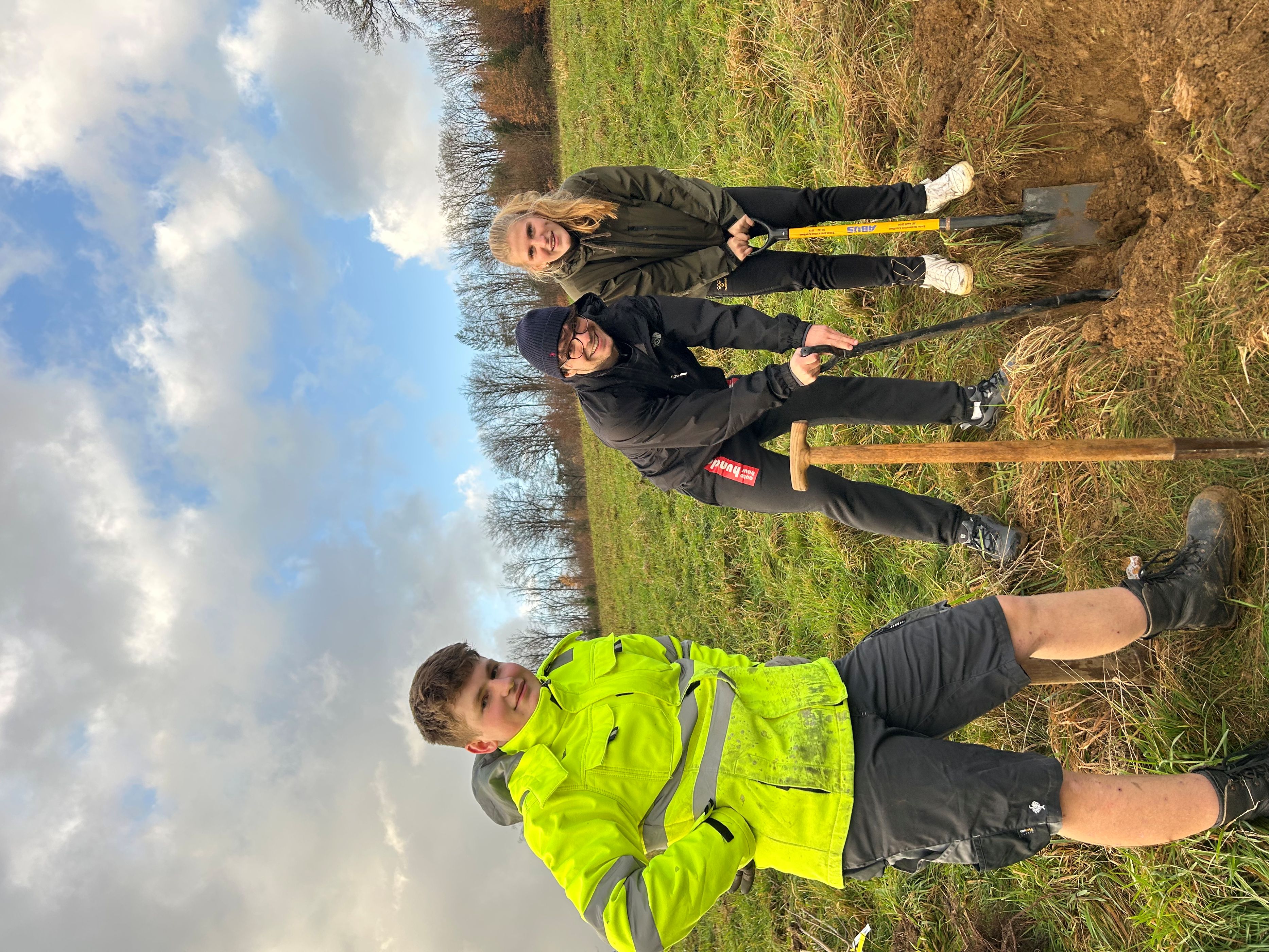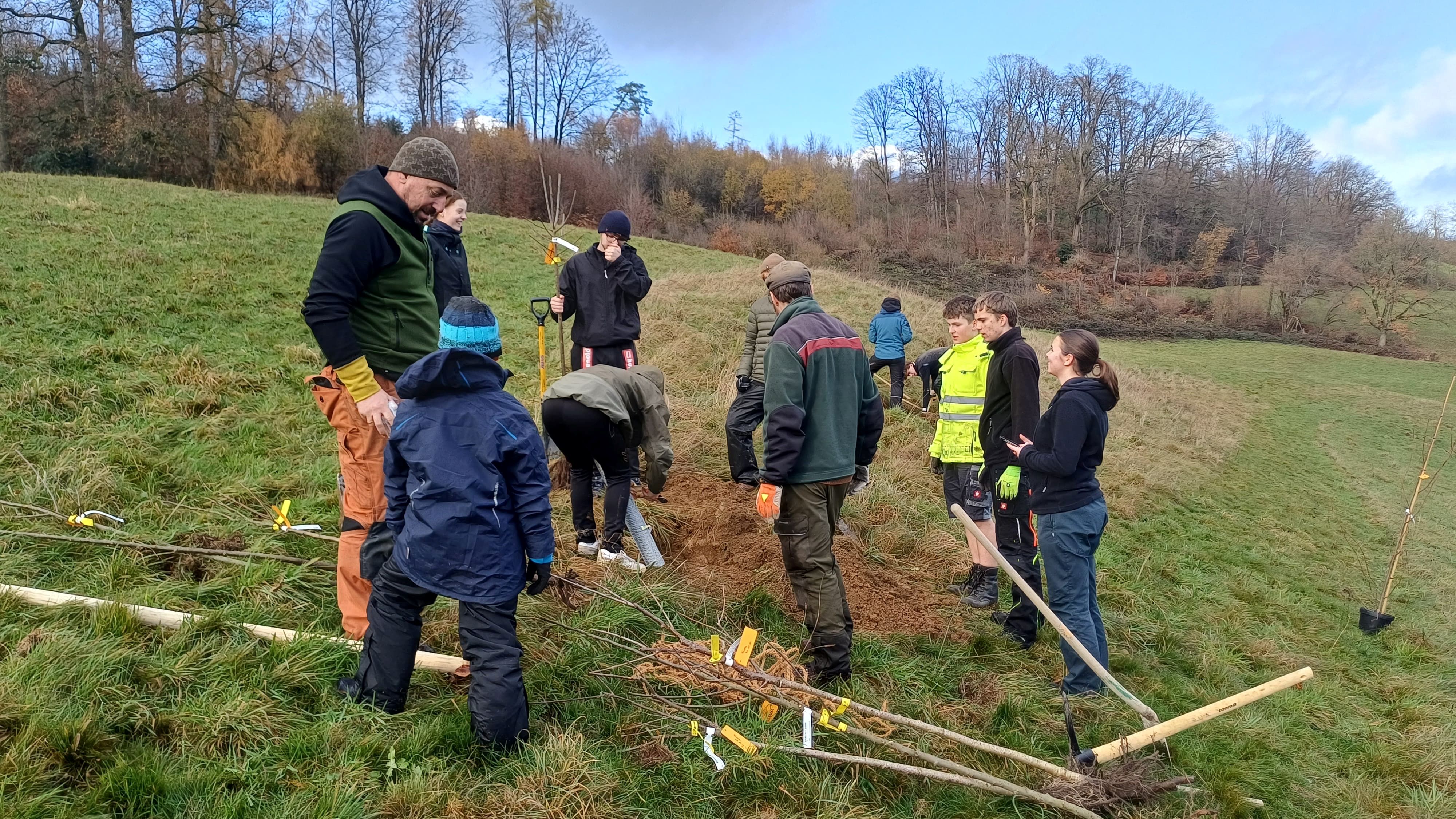Am 18. November 2025 führte der TransAlp-Projektkurs eine große Baumpflanzaktion auf einer Wiese in Strombach durch. Vor einigen Wochen war der Kurs über Social Media vom Alpencross-Kurs des Gymnasiums in Wenden nominiert worden, an der Aktion teilzunehmen. Doch anstatt – wie ursprünglich geplant – nur einen einzelnen Baum zu pflanzen, entschieden wir uns dafür, jedem Sponsor aus diesem und den vergangenen Jahren einen eigenen Baum zu widmen. Für den Förderverein wurde, passend zur Schule, eine Linde gepflanzt.