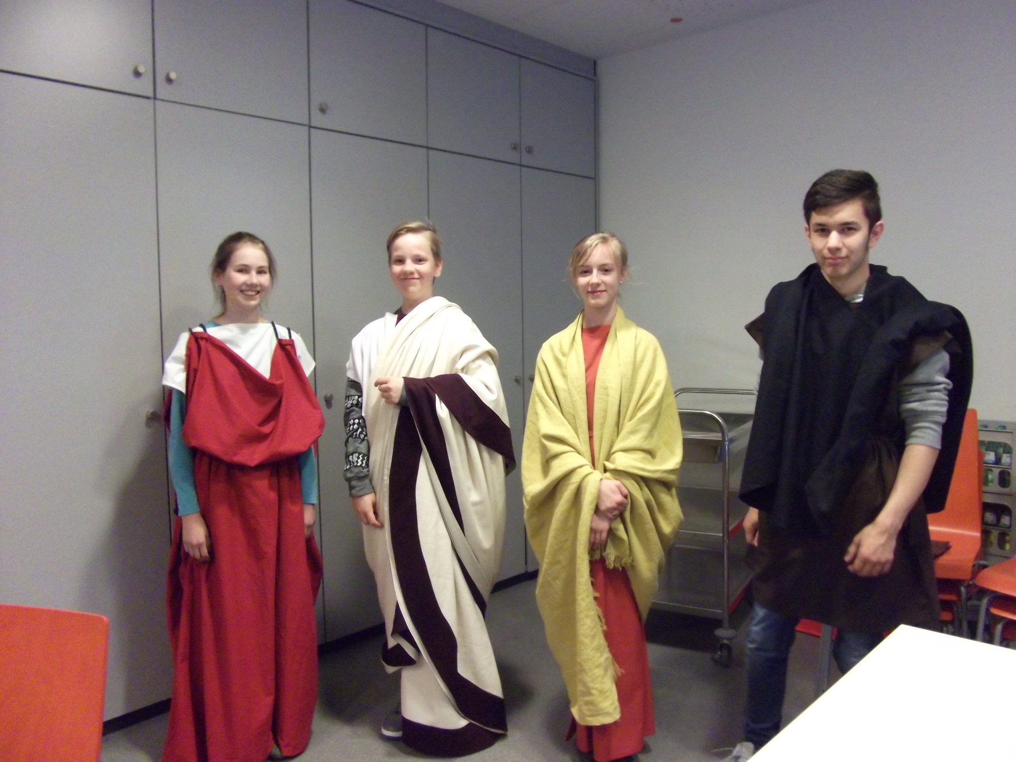 Am Donnerstag, dem 30.05.2015, machten sich die Lateinkurse der Jahrgangsstufe 8 früh auf den Weg nach Xanten, um die Welt der alten Römerstadt mit angenehmem Sonnenschein genauer unter die Lupe zu nehmen. Dort besuchten wir das archäologische Römer-Museum, bei dem wir wahlweise über folgende Themen mehr erfuhren: In der Führung „Latein im Museum“ bekamen wir viele Informationen über die Art und Weise, wie damals Texte verfasst wurden und erforschten anhand von lateinischen Inschriften und Abkürzungen ihre Bedeutungen; eine weitere Führung beschäftigte sich mit den ehemaligen Thermen, von denen wir sogar ein paar Ausgrabungen genauer betrachten konnten; zudem fand eine dritte Führung über die römische Kleidung statt, bei der Unterschiede zwischen den verschiedenen Rangordnungen erläutert wurden und auch einige Kostüme anprobiert werden konnten. Nebenbei erfuhr man in allen Führungen natürlich auch vieles über das Alltagsleben in einer antiken Stadt wie z.B. den Bau von Gebäuden und das Leben der Legionäre. Nach einer kleinen Mittagspause, in der wir uns frei bewegen durften, konnten die Kurse von Frau Brügger und Frau Lichtinghagen wichtige, rekonstruierte Bauwerke in der früheren Colonia Ulpia Traiana erkunden, wie z.B. den Hafentempel, das Amphitheater und die Wohnräume einer römischen Familie. Der archäologische Park bot also nicht nur viele, beeindruckende Werke, sondern auch durch die zahlreichen Wiesen schöne Orte zum Entspannen und eine Küche mit leckerem, römischen Essen. So wurde die Exkursion nicht langweilig, da man nicht einfach Informationen bekam, sondern viele Dinge selbst testen und sich ein wenig in die Situation eines römischen Bürgers/einer römischen Bürgerin hinein versetzen konnte. Anna Appel und Georg Hasch, Klasse 8d