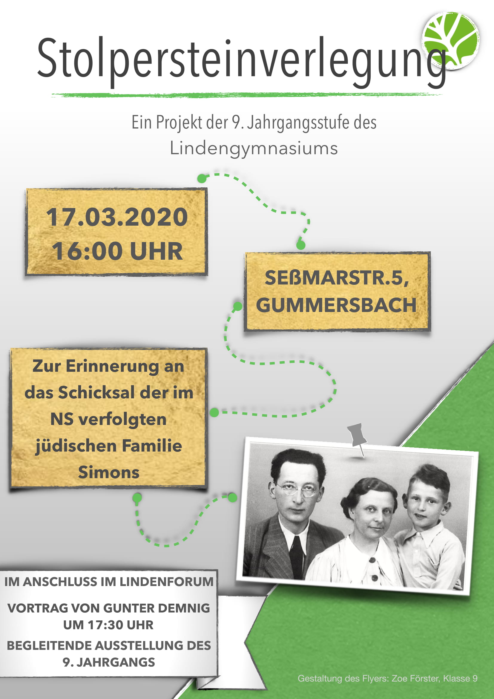 Freitag, 13.03.2020, 12.20 Uhr: Die Stolpersteinverlegung am Dienstag, 17.03.2020, ist abgesagt.